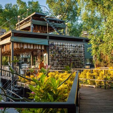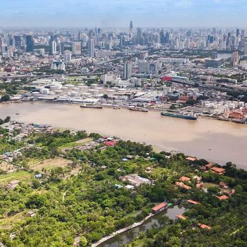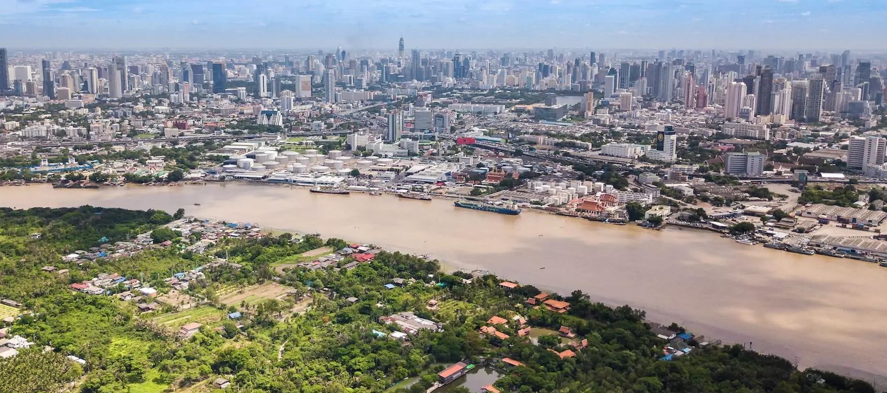 During our bike ride, we will visit the Bangkok Treehouse, a unique hotel in Bang Krajao. You can enjoy a coffee (at your own expense) at the café with great views of the treetops, river, and Bangkok skyline
